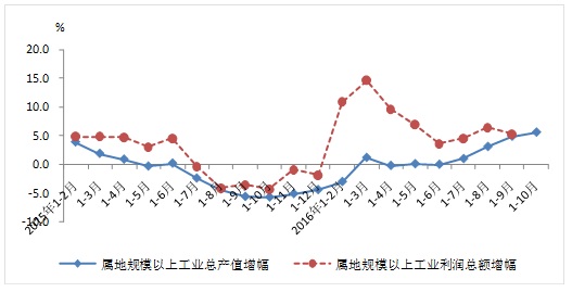 工业生产小幅上升,企业利润同比好转。1-10月,全区实现规模以上工业总产值4278.6亿元,同比增长5.4%。其中,属地产值2651.5亿元,同比增长5.6%。1-9月,全区规模以上工业企业实现主营业务收入3988.6亿元,同比增长5.5%,其中属地2509.9亿元,同比增长7.4%;实现利润总额447.5亿元,同比增长12.0%,其中属地197.6亿元,同比增长5.3%。全区规模以上工业企业中亏损企业335家,亏损面为27.6%,较上半年收窄2.4个百分点。