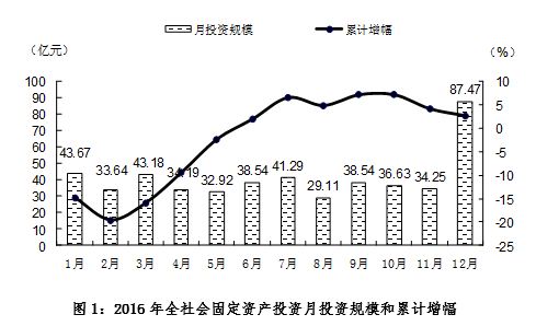 2016年,全区工业、城市基础设施、房地产开发共完成投资432.09亿元,占全社会固定资产投资的87.6%。三大投资领域中除工业投资继续下降外,房地产开发和城市基础设施投资均有所增长。
