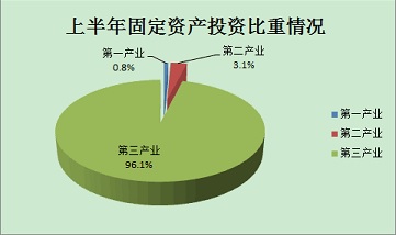 2、三次产业投资依然不均衡。第一产业投资依然在低位运行。上半年,全区完成第一产业投资额0.40亿元,同比增长2.7%,与上年同期相比略有增长;第二产业尤其是工业投资额下降态势明显。上半年完成工业性固定资产投资额1.59亿元,与上年同期5.24亿元相比,下降69.8%;第三产业投资额实现较快增长。上半年全区共完成第三产业投资额48.51亿元,与上年同期44.46亿元相比,实现了9.1%的增长幅度,增长速度较快。