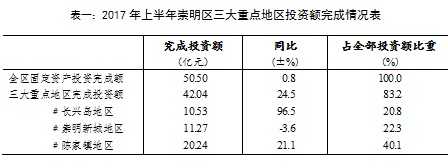 崇明区统计局 2017-07-31一、上半年全区固定资产投资完成总体概况