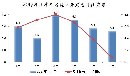 从房地产投资看,2017年,全区房地产开发投资额将继续攀升,预计全年完成64.2亿元左右,增幅在0.5%左右,但增速比往年有明显的回落。