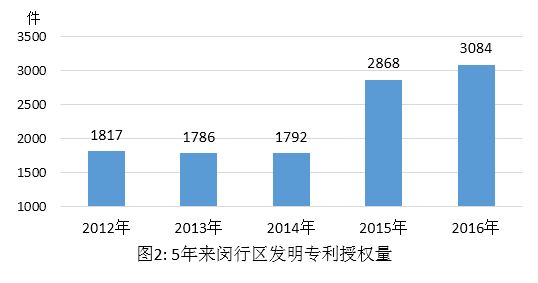 5年来闵行区积极营造创新创业的生态环境,目前正全力建设上海南部科技创新中心核心区。区内高校、科研院所、先进制造企业云集,至今年上半年,全区共有跨国公司地区总部33家,外资研发中心39家。至2016年底,区内共有市科技小巨人企业67家。2016年,闵行区研究与试验发展(R&D)经费内部支出181.76亿元,是2012年的1.4倍,年平均增长8.7%。2016年,全区专利申请量14714件,发明专利授权量3084件,是2012年的1.7倍。