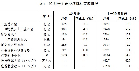 10月份,崇明经济继续保持总体平稳、稳中有进的良好态势。其中,财政收入、社会消费品零售总额以及招商引资等指标均保持了两位数增长;固定资产投资额也呈现较快增长趋势。工业生产依然形势低迷,全区经济发展的结构和质量有待得到优化。