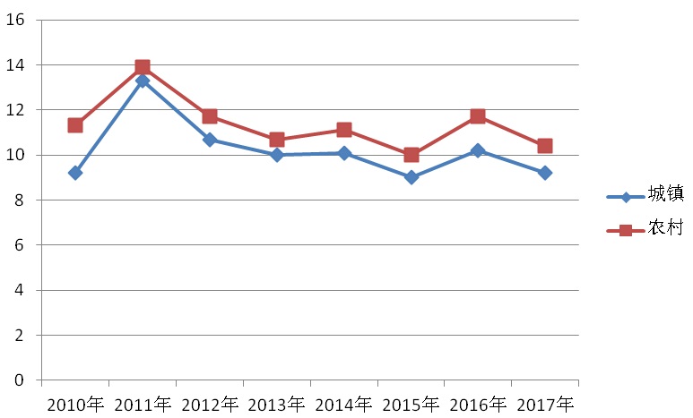 图1:2010年-2017年城乡居民人均可支配收入增速图