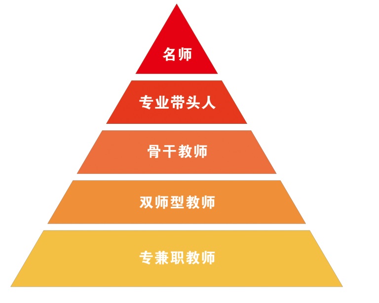 (二)构建金字塔式师资队伍结构学校在落实师德建设“三五”机制的同时,通过规划引领、政策导向、搭建平台,以及学历进修、专业培训、评优晋升职称、名师带教、企业锻炼等途径,构建了以专兼职教师为基础,双师型教师、骨干教师、专业带头人、名师逐层选拔培养的金字塔结构。