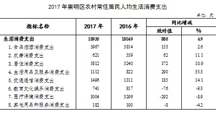 2017年崇明区农村常住居民生活消费增长平稳