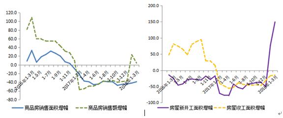 房产开发降幅收窄。一季度全区房地产新开工面积34.5万平方米,同比增长1.5倍。房屋施工面积890.9万平方米,房屋竣工面积77.7万平方米,同比分别下降15.9%和14.8%,降幅较去年同期收窄5.4个和33.7个百分点。商品房销售面积37.1万平方米,同比下降39.1%;商品房销售额76.9亿元,同比增长4.0%。