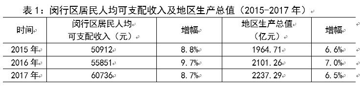 闵行区统计局 2018-04-252017年,闵行区委、区政府紧紧围绕建设生态宜居现代化主城区的奋斗目标,坚持稳中求进的工作总基调,抓统筹、促转型,破瓶颈、补短板,强服务、惠民生,突出民生保障,做优公共服务,增进民生福祉。2017年闵行区居民人均可支配收入达到60736元,较上年增长8.7%,继续呈现平稳增长态势,基本保持与地区经济同步增长。