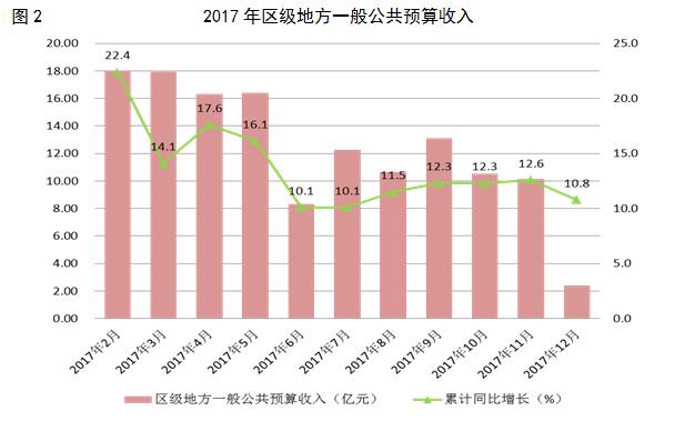 全年全区实现区级地方一般公共预算收入151.11亿元,同比增长10.8%。其中实现税收收入134.52亿元,同比增长11.5%,实现非税收入16.59亿元,同比增长6.0%。