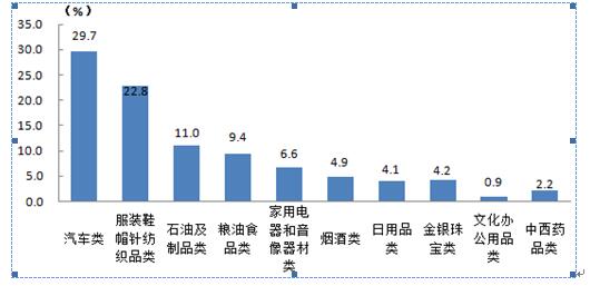 2.汽车类及服装鞋帽针纺织品类消费拉动作用明显