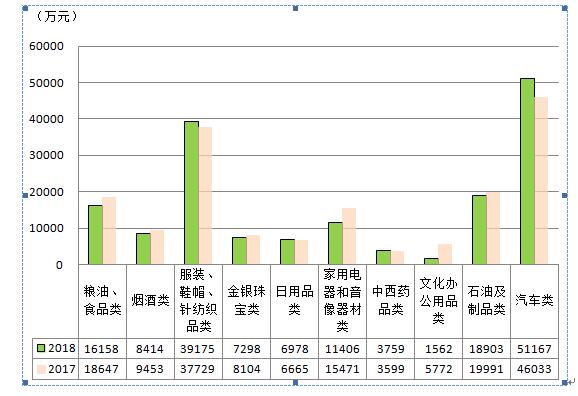 图四 2017、2018一季度限额以上主要商品类累计零售额