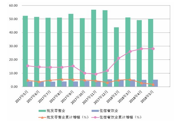 图3: 2017年5月—2018年5月批发零售业和住宿餐饮业分月