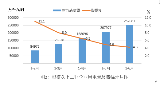 二、工业生产用电量增幅逐月下滑