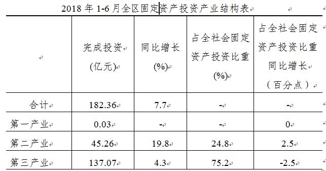 上半年,全区全社会固定资产投资总量进一步扩大,投资额保持两位数增长,完成投资190.21亿元,同比增长12.3%。其中,市属项目完成投资7.85亿元;区属项目完成投资182.36亿元,同比增长7.7%。
