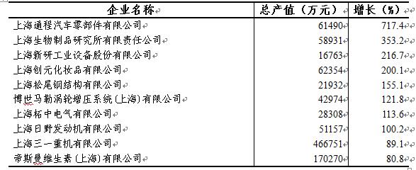 表2:2018年1-6月奉贤区工业产值增速前十企业情况