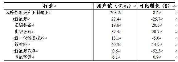 1-6月完成战略新兴产业工业总产值208.2亿元,可比增长8.6%,高于全市0.5个百分点。战略新兴产业工业总产值占全区规模以上工业总产值的比重为24.9%,郊区排名第六,较上年同期减少了4.7个百分点,低于全市平均水平(29.8%)。分行业来看,七大战略新兴行业中有三大行业的产值较去年同期是下降的,分别是新能源、新一代信息技术和新能源汽车,降幅分别为25.7%、5.0%和62.3%。从具体企业来看,新能源行业中下降较多的是上海艾力克新能源有限公司和上海锦热太阳能科技有限公司,分别下降92.8%和76.5%;新一代信息技术行业中降幅较高的是先锋高科技(上海)有限公司,同比下降21.1%;新能源汽车行业中下降较多的是上海德朗能动力电池有限公司,同比下降58.5%。
