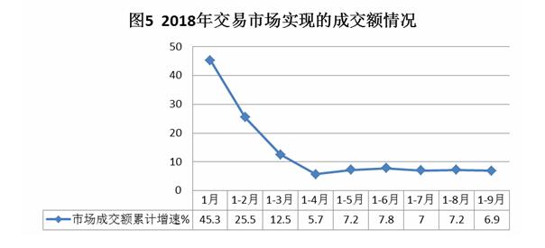 1-9月,全区限额以下实现零售额206.47亿元,与去年相比,增长4.3%。其中,109个交易市场实现零售额111.64亿元,下降1.5%,剔除交易市场,限额以下实现零售额增长12.1%。交易市场零售额下滑的主要原因是今年以来交易市场关闭8个,影响零售额7.8亿元,拖累全区社会消费品零售总额1.6个百分点。剔除这8个市场的影响,109个交易市场实现零售额与去年同期相比增长5.8%。