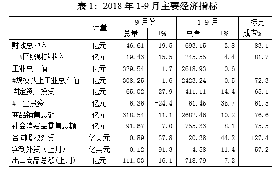 年初以来,全区经济运行总体平稳,从内部看,消费、投资保持了较快增长,经济运行的抗波动能力增强;从外部看,一方面经济发展的外部环境更趋复杂多变,不稳定、不确定性加大对全区经济发展带来不利影响,另一方面上海市打响“四大品牌”建设、筹备举办首届中国国际进口博览会等将对全区经济发展起到支撑作用。如果四季度外部经济环境没有大的变化,预计全年经济增长将保持平稳运行,生产总值预计能完成年度目标,商业、社会服务业将保持平稳较快增长,工业与上年基本持平,固定资产投资受去年四季度基数较高的影响预计全年增速将比前三季度有所回落。