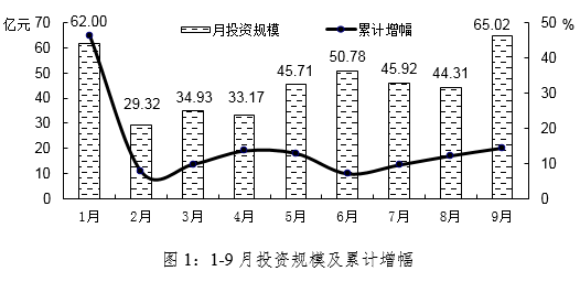 1-7月全区房地产投资始终在低位运行,自8月份起增幅由负转正,至9月份完成投资264.89亿元,同比增长12.9%。