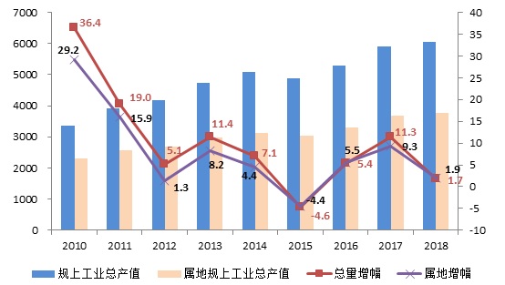 工业产值保持低位增长。全区规模以上工业企业实现总产值6044.1亿元,同比增长1.7%。其中,汽车产业制造业实现工业产值4405.9亿元,同比增长0.7%,占全区规模以上工业总产值的72.9%。属地规模以上工业企业实现产值3760.3亿元,同比增长1.9%,其中,汽车零部件业实现工业产值2122.0亿元,与去年同期持平,占全区属地规模以上工业总产值的56.4%。