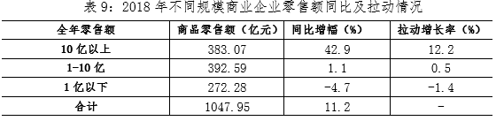 (三)零售额总量大的企业增幅较高,拉动增长明显