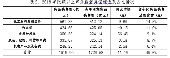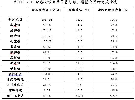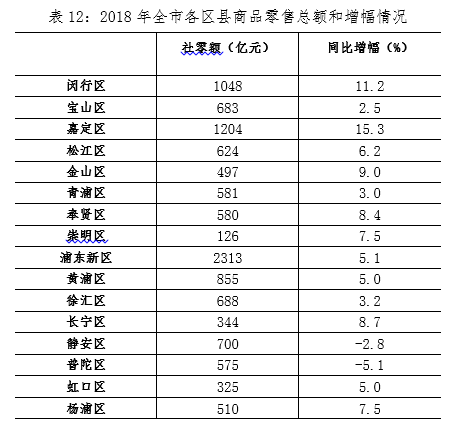 2018年闵行区商业运行稳中有升