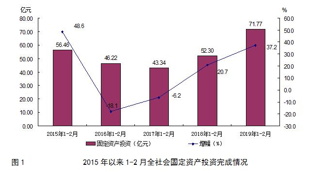 1-2月,全区实现固定资产投资总额71.77亿元,同比增长37.2%,与去年同期相比,加快16.5个百分点(见图1)。