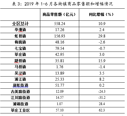 2019年上半年闵行区社会消费品零售总额增长10.9%