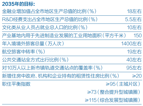 更具活力的繁荣创新之城:上海将在2020 年基本建成与我国经济实力和国际地位相适应、具有全球资源配置能力的国际经济、金融、贸易、航运中心,形成具有全球影响力的科技创新中心基本框架的基础上,依托国家创新体系建设,充分发挥服务长江经济带的龙头城市和 “一带一路”建设桥头堡的作用,带动形成具有全球竞争力的长三角世界级城市群,基本建成具有全球影响力的科技创新中心。