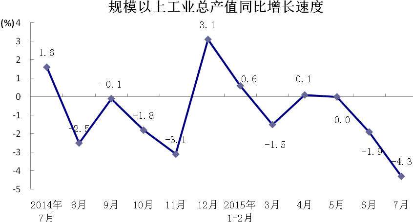 2015-08-16 来源:上海市统计局7月份,本市规模以上工业(以下简称工业)企业完成工业总产值2466.89亿元,比去年同月下降4.3%。