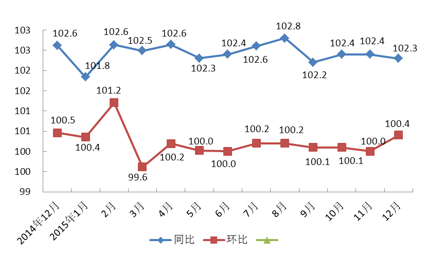 附图:2014年12月-2015年12月上海居民消费价格同、环比