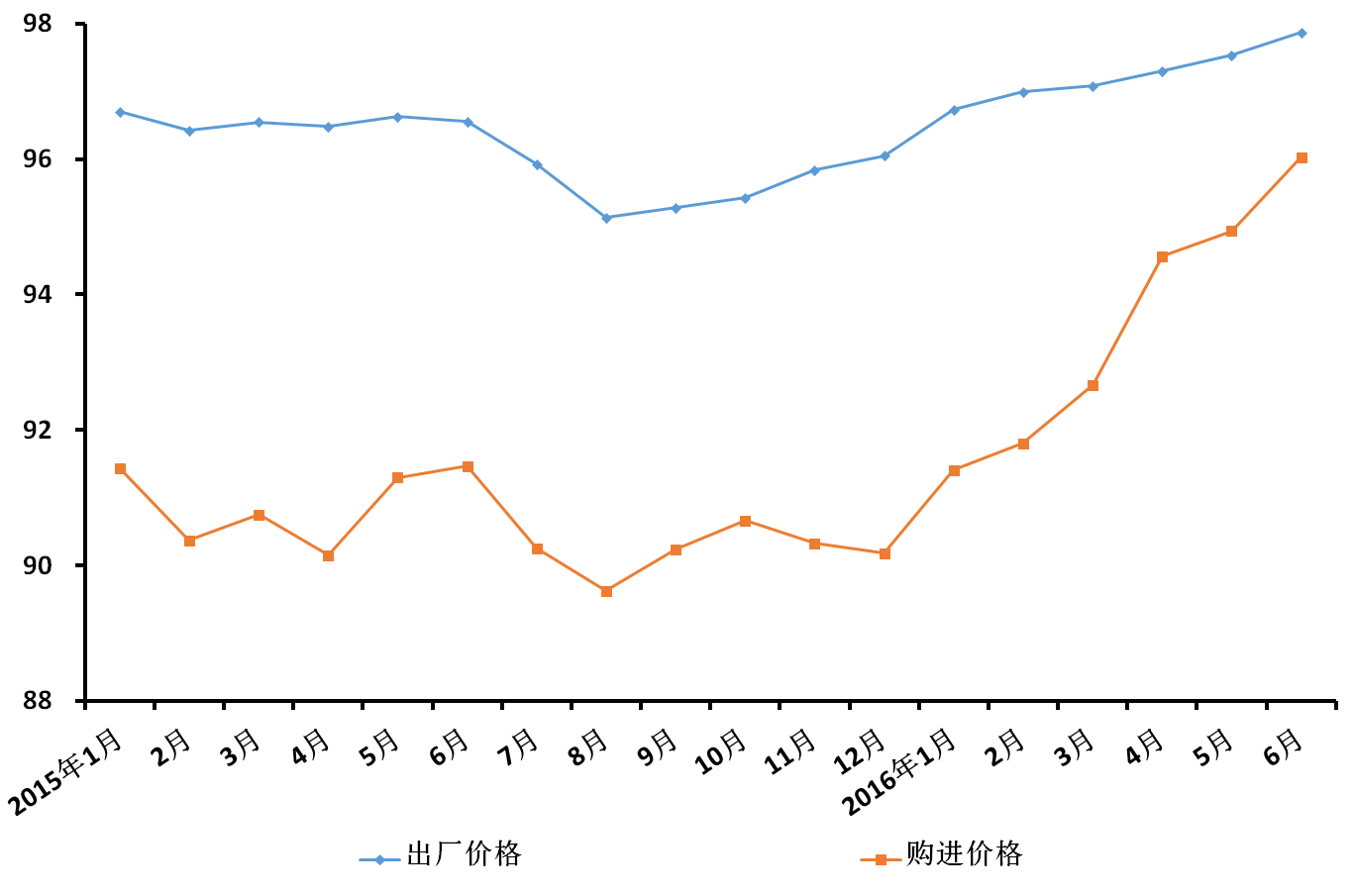 2016-07-18 来源:国家统计局上海调查总队6月份,本市工业生产者出厂价格总水平比去年同期下降2.1%,降幅比上月收窄0.4个百分点;购进价格总水平比去年同期下降4.0%,降幅比上月收窄1.1个百分点(见下图)。