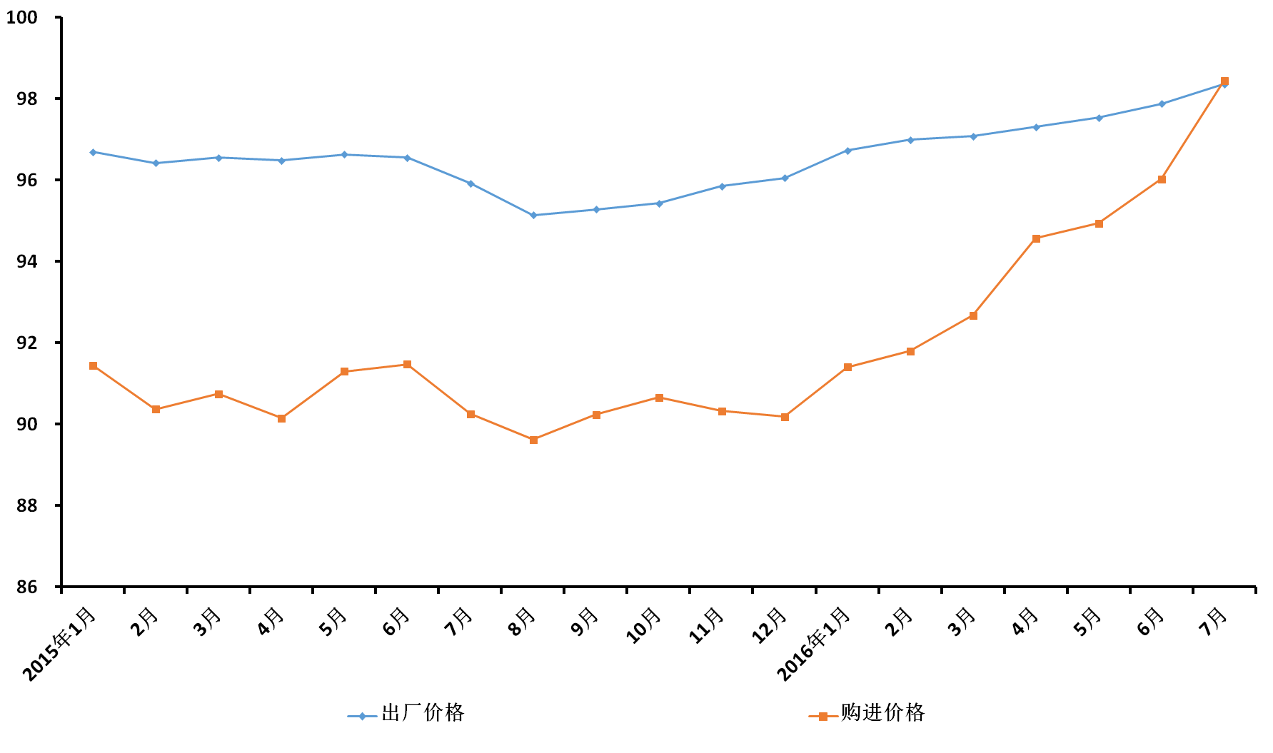 7月份,本市九大类工业生产者购进价格同比三升六降。其中,燃料动力类、化工原料类和建筑材料类购进价格分别下降8.2%、4.1%和2.5%。