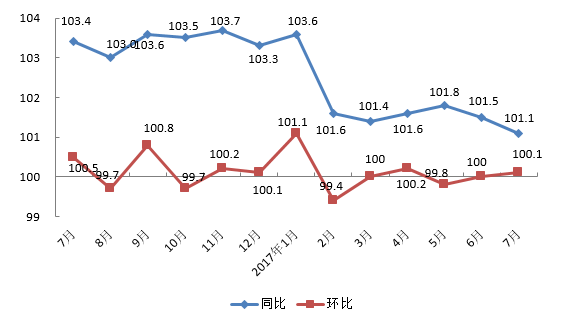 2016年7月-2017年7月上海居民消费价格同、环比走势