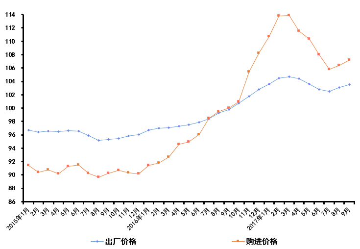 2017-10-18 来源:|29月份,本市工业生产者出厂价格比去年同期上升3.5%,升幅比上月扩大0.4个百分点;购进价格比去年同期上升7.2%,升幅比上月扩大0.8个百分点(见下图)。