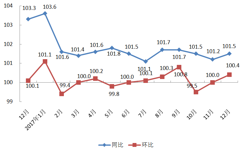 2018-01-22 来源:|012月份本市居民消费价格同比上升1.5%