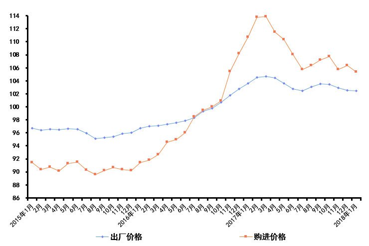2018-02-11 来源:|21月份,本市工业生产者出厂价格比去年同月上升2.5%,升幅较去年12月收窄0.1个百分点;购进价格比去年同月上升5.4%,升幅较去年12月收窄1.0个百分点(见下图)。