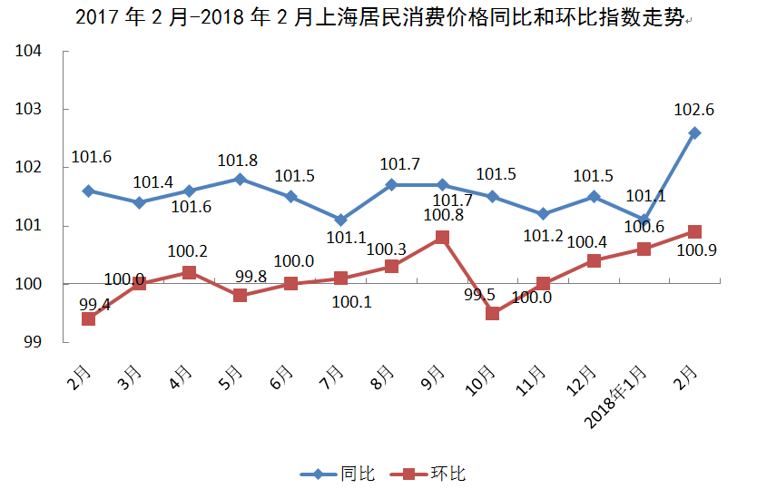 2018-03-09 来源:|02月份本市居民消费价格同比上升2.6%