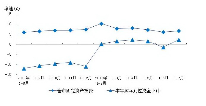 2018-09-14 来源:投资建设统计处|11-7月本市固定资产投资增长6.6%