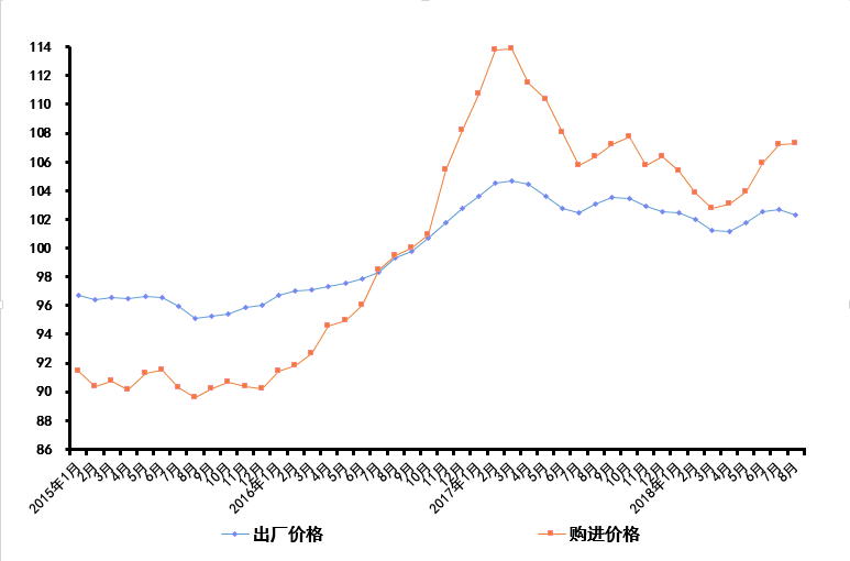 2018-09-26 来源:|28月份,本市工业生产者出厂价格比去年同月上升2.3%,升幅较上月收窄0.4个百分点;购进价格比去年同月上升7.2%,升幅与上月持平(见下图)。