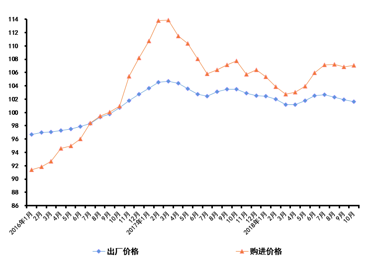 2018-12-20 来源:|210月份,本市工业生产者出厂价格比去年同月上升1.6%,升幅较上月收窄0.3个百分点;购进价格比去年同月上升7.0%,升幅较上月扩大0.1个百分点(见下图)。