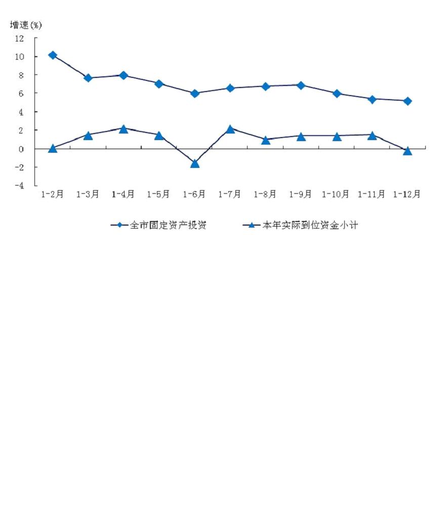 本市投资实际到位资金小计比上年下降0.2%。