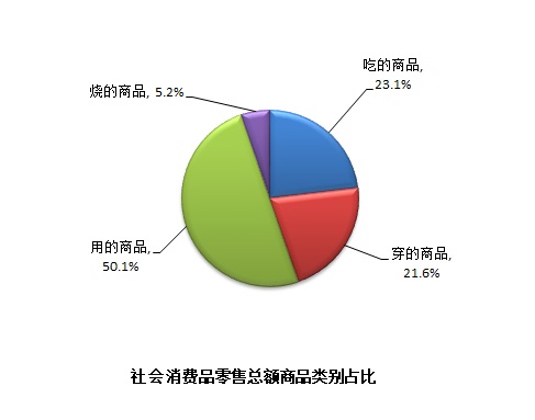 分商品类别看,1-2月吃、穿、用、烧的商品零售额分别为504.78亿元、472.18亿元、1099.70亿元和113.12亿元,分别占社会消费品零售总额的23.1%、21.6%、50.1%和5.2%。其中,吃、穿、用的商品分别增长4.4%、11.9%、6.8%,烧的商品下降9.8%。