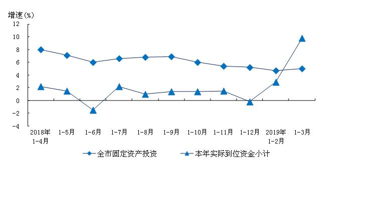 2019-04-19 来源:投资建设统计处|11-3月本市固定资产投资增长5.0%