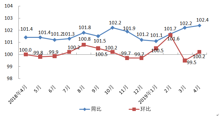 2019-05-09 来源:|04月份本市居民消费价格同比上升2.4%