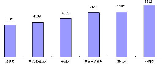 图 5 各种类型家庭受访者2011年春节消费支出比较