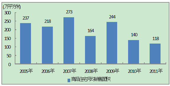 图2 2005年-2011年本市商品住宅月均销售面积比较