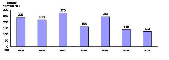图2 2005年~2011年本市商品住宅月均销售面积比较
