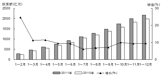 从投资结构看,商品住宅投资占比最高、增长最快。2011年,本市商品住宅投资1398.75亿元,比上年增长13.7%,占全部房地产开发投资的64.4%;办公楼投资231.09亿元,增长3%,占10.6%;商业用房投资236.05亿元,下降3.5%,占10.9%。