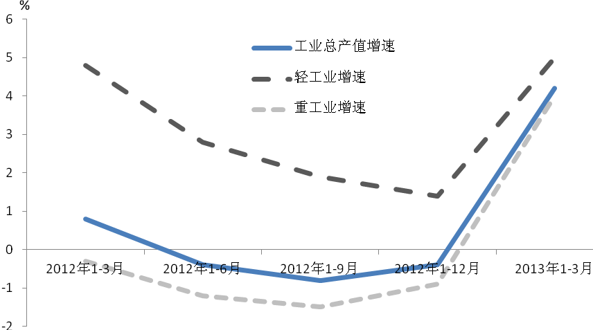 上海市统计局 2013-04-23一季度,本市工业生产实现平稳增长,主要产品产量稳步提升,重点行业拉动明显,计算机、通信和其他电子设备制造业带动出口增长作用突出。但工业增长的不确定因素依然存在,未来持续性增长面临挑战。